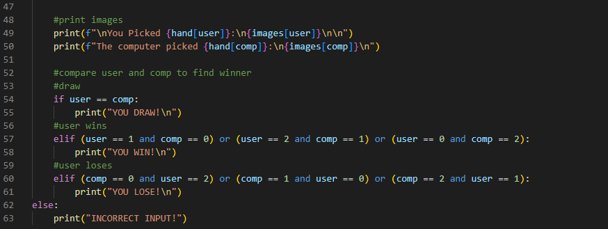 <Created the ‘Rock, Paper, Scissors’ game. User input versus Computer input, decisions are compared in a nested loop and winner is printed. >